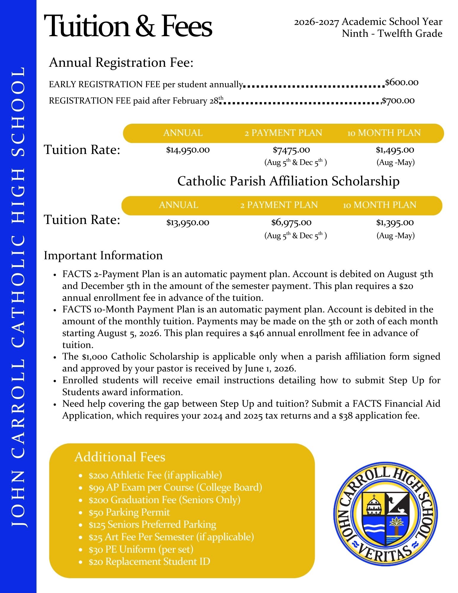 About Leadership School Advisory Council Faculty & Staff School Profile Calendar Parent Resources FACTS Family Portal Parent-Student Handbook Diocesan Medical Authorization Form Employment Opportunities Standards of Ethical Conduct Office of Safe Environments Diocese of Palm Beach JCHS Live Admissions Admissions Admissions Process New Student Inquiry Online Application High School Placement Test Finance Office Tuition And Fees Scholarships & Financial Aid Parish Affiliation Forms New Student Information Ram for a Day Academics Academics SAT Dates & Deadlines Guidance Naviance Graduation Requirements Alumni Transcript Request FAFSA Bright Futures Application College & Career Events Practice SAT Family Portal Academic Handbook & Course Catalog JCHS Dual Enrollment Handbook Student Life Faith & Service Faith & Service Service Opportunities Spiritual Opportunities Peer Ministry Athletics Home of The Rams Game Day Tickets Adidas Store Varsity Letterman Jackets Athletic Field House Certified Athletic Trainer Policies & Information Athletic Packet NFHS Concussion in Sports AT 18- Post Head Injury/Concussion Form Coach Contacts Support JCHS Support JCHS John Carroll Fund John Carroll Fund Brochure Impact Report 2025 Giving Day Alumni Update Your Information Reunion In a Box Strategic Plan Parent Service Hours & Volunteering Parents' Association Give Attendance Calendar FACTS Portal