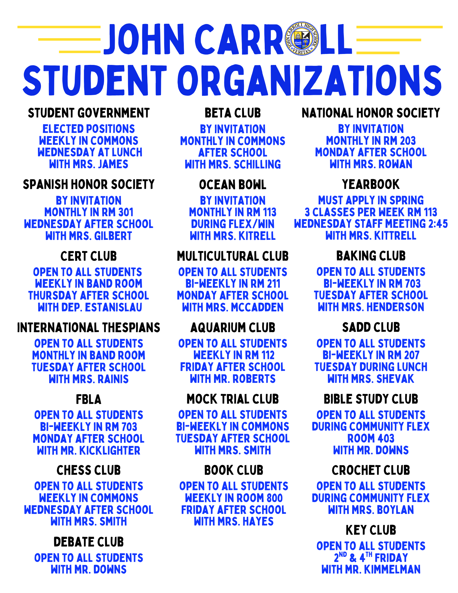 - Key Club: Mentor Mr. Josh Kimmelman